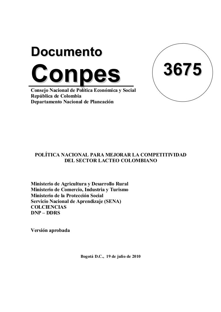 Como una herramienta desde la institucionalidad el gobierno expidió dos documentos Conpes y la normatividad necesaria para el desarrollo de los lineamientos incluidos en estos, dirigidos a incentivas y proteger el sector lácteo para los diferentes acuerdos comerciales. Los documentos Conpes 3675 y 3676 son los ejes centrales de la política de modernización y de mejoramiento de la competitividad del sector lácteo que permiten al gobierno nacional cumplir con los compromisos adquiridos internacionalmente, en especial los derivados de los TLC negociados.